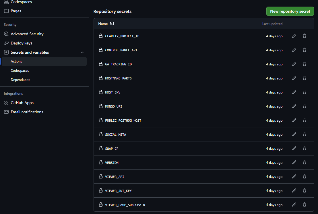 The workflows utilize secrets stored under your repository.