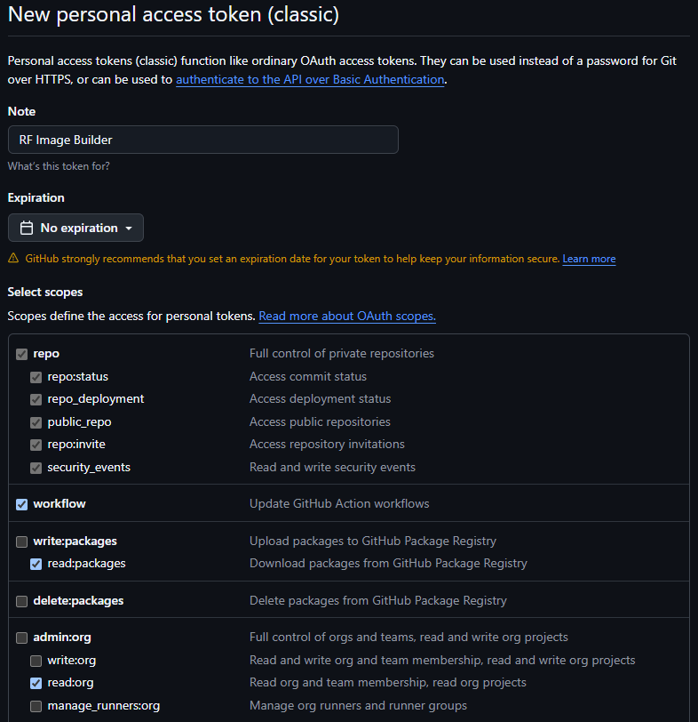Yat the question to update GitHub configuration after running the configure-rf script.